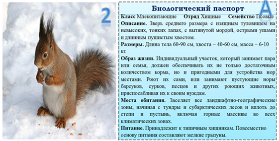 5. (6 баллов) Юный биолог Петя решил составить биологический паспорт животных. Подобрать фотографии к паспортам он поручил младшей сестрёнке Даше, которая всё перепутала. Помогите Пете исправить ошибки сестрёнки, расположив каждое фото животного под его биологической характеристикой. Ответ запишите в виде комбинации цифр и букв без пробелов и каких-либо знаков препинания, цифры должны идти по порядку, например 1а2г3в