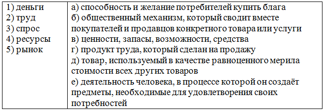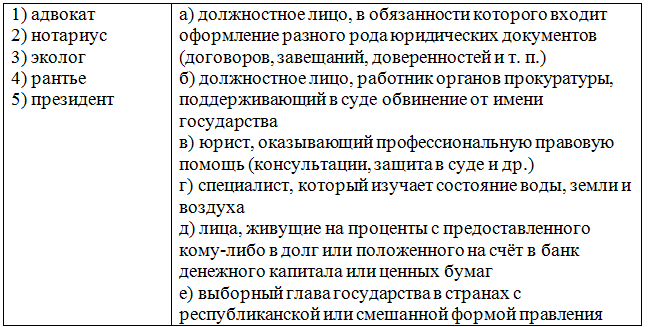 8. (4 балла) Соотнесите элементы двух множеств. Ответ запишите в виде комбинации цифр и букв без пробелов и каких-либо знаков препинания, цифры должны идти по порядку, например, 1а2в3б4г5д