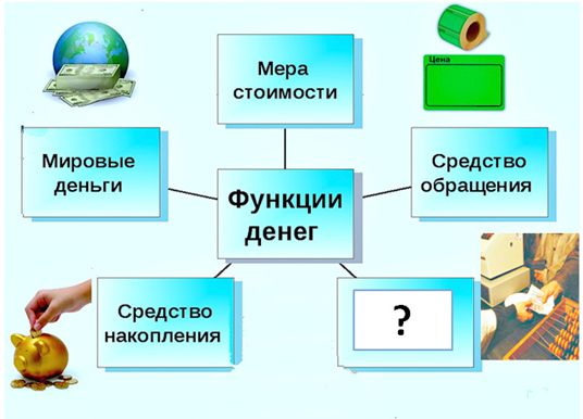 6. (3 балла) Определите недостающую в схеме функцию денег. Запишите ответ двумя словами через один пробел, без знаков препинания и кавычек.