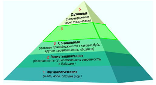 3. (2 балла) Выберите ту потребность, которая, согласно пирамиде А. Маслоу, соответствует 4 ячейки пирамиды.
