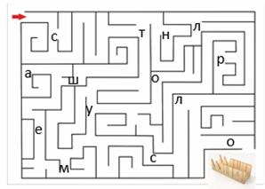 5. (4 балла) Пройдите по самому короткому пути лабиринта. Соберите буквы по порядку и получите слово. Запишите полученное слово в ответе без знаков препинания.