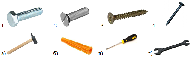 8. (5 баллов) Среди изображений выберите слесарные инструменты, механизмы и машины. Ответ запишите в виде последовательности цифр и букв без пробелов и каких-либо знаков препинания, располагая цифры в порядке возрастания, а буквы, стоящие за ними в алфавитном порядке, например, 1абвг2дежз