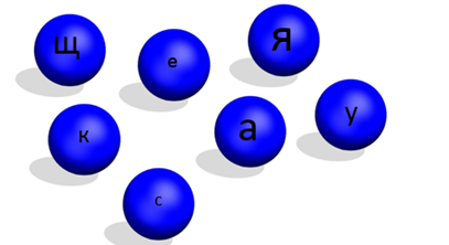 5. (4 балла) Составьте слово из букв, изображенных в шарах, располагая буквы в порядке возрастания их размера. Что обозначает полученное слово?