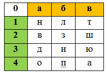 Слово 2: 4б1б4а1в3б1а4в