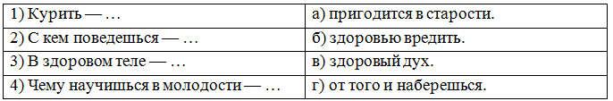 9. (5 баллов) Соберите пословицы о правилах безопасности. Ответ запишите в виде комбинации цифр и букв без пробелов и каких-либо знаков препинания, цифры должны идти по порядку. Например, 1а2г3в4б5д