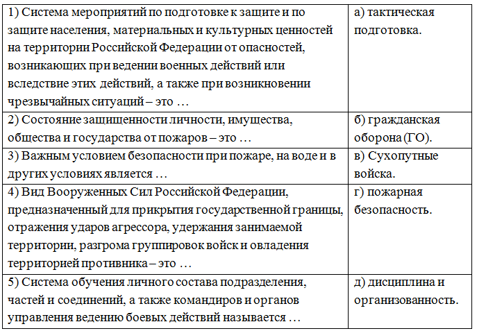 8. (5 баллов) Составьте предложения из столбцов таблицы. Ответ запишите в виде комбинации цифр и букв без пробелов и каких-либо знаков препинания, цифры должны идти по порядку. Например, 1а2г3в4б