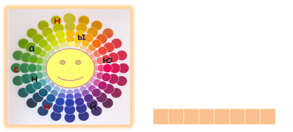 5. (4 балла) Один из типов цветовой гармонии, который строится на повторении одного цвета или нескольких цветов, близких по спектру? В цветовом круге спрятаны буквы-подсказки. Полученное слово укажите в ответе без пробелов и каких-либо знаков препинания.