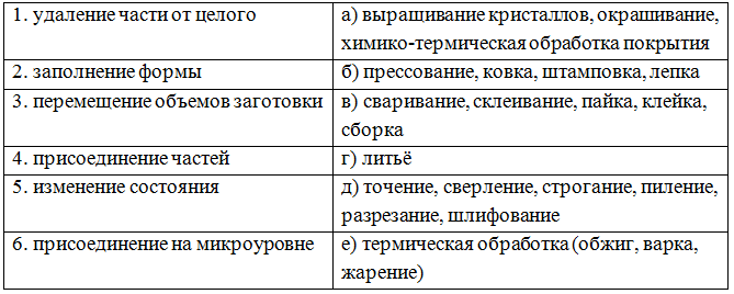 8. (5 баллов) Соотнесите названия технологических процессов обработки материалов с их определениями. В ответе укажите комбинацию цифр и букв без пробелов и каких-либо знаков препинания, располагая цифры в порядке возрастания. Например, 1б2а3в