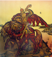 4. (4 балла) На рисунке изображён один из главных героев древнерусского былинного эпоса,