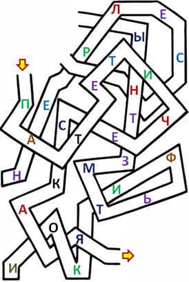 5. (по 2 балла за каждый пункт) Найди выход из лабиринта. На пути к выходу собери все буквы по порядку и узнай название оперы.