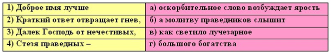 7. (6 баллов) Соедини притчи. Ответ запиши в виде комбинации цифр и букв без пробелов и каких-либо знаков препинания, цифры должны идти по порядку, например, 1г2б3в4а