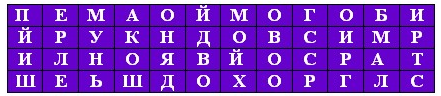4. (6 баллов) Какие предметы, зашифрованные в таблице, не входили в «семь свободных искусств» в римской системе образования? Слова могут изгибаться как угодно, но по диагонали двигаться нельзя.