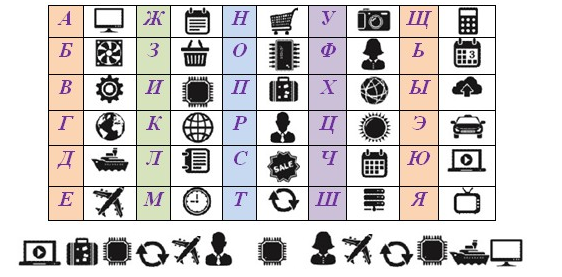 7. (по 4 балла за каждый пункт) Расшифруй слово, используя таблицу. В ответе запиши это слово без кавычек и каких-либо знаков препинания.