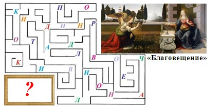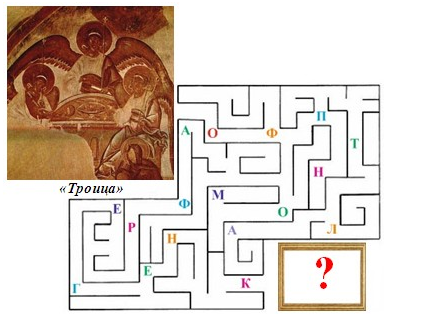 5. (6 баллов) Пройди по лабиринту, от картины до автора, собирая буквы. Составь из них фамилию художника, написавшего эту картину. В ответе запиши только фамилию без кавычек и каких-либо знаков препинания.