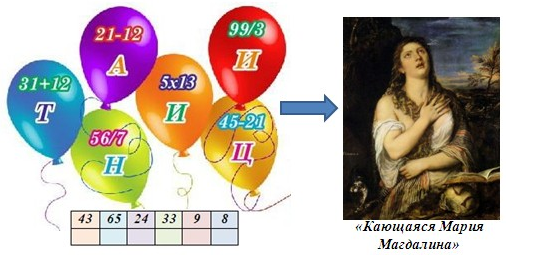 4. (5 баллов) Реши примеры, вставь буквы в ячейки с соответствующими решениями и узнай автора этой картины. Запиши в ответе только фамилию без кавычек и каких-либо знаков препинания.