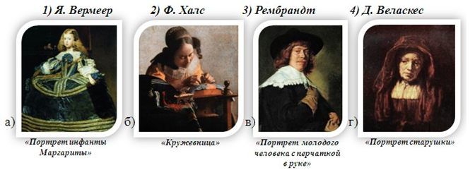 4. (6 баллов) Соедини художников и написанные ими картины. Ответ запиши в виде комбинации цифр и букв без пробелов и каких-либо знаков препинания, цифры должны идти по порядку, например, 1б2а3в4г