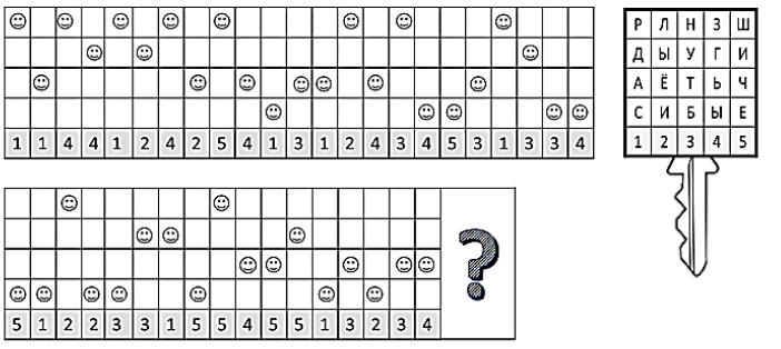 9. (5 баллов) Используя ключ, расшифруй и продолжи фразу. В ответе напиши дописанное слово.