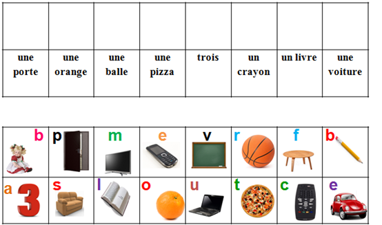 2. un taille-crayon, une carotte, un cartable, un cahier
