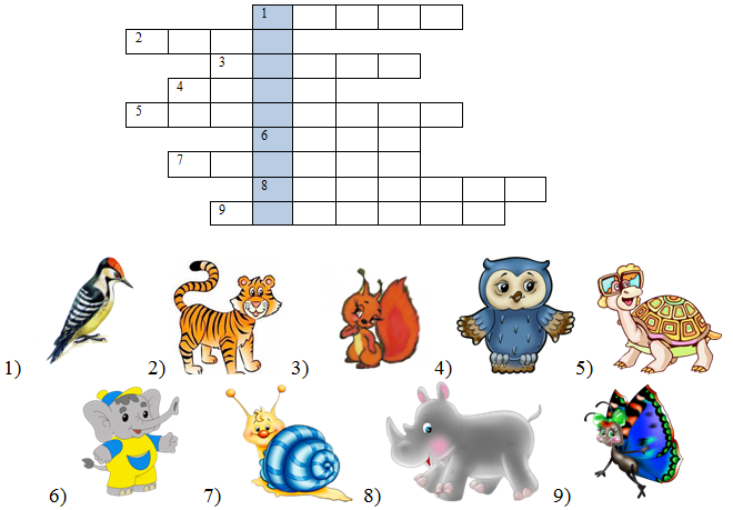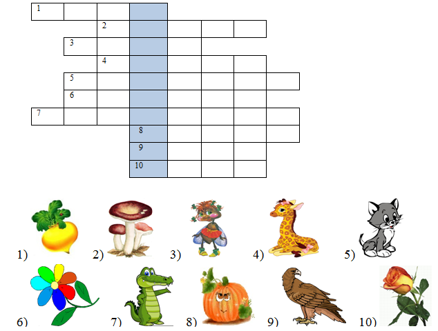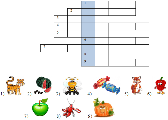 8. (по 4 балла за каждый пункт) Разгадай кроссворд и прочти в выделенном столбце название материала, из которого делают бумагу. Запиши полученное слово в ответе без кавычек и каких-либо знаков препинания.