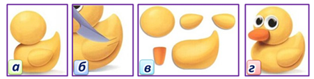 4. (4 балла) Прочти этапы лепки утенка.