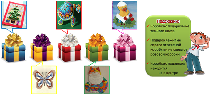 8. (5 баллов) Следуя подсказкам, определи, в какой коробке находится подарок, который подготовил своей сестре Ваня?