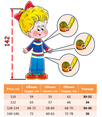 6. (4 балла) Определи размер одежды Оли по снятым меркам, пользуясь нижерасположенной таблицей.