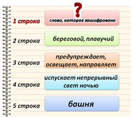10. (5 баллов) Синквейн – это необычное стихотворение, которое состоит из пяти строк. Первая строка – это слово, которое описывается следующими четырьмя строками. Прочти этот синквейн и определи, какое слово должно быть записано в первой строке? Найди, под какой буквой оно изображено?