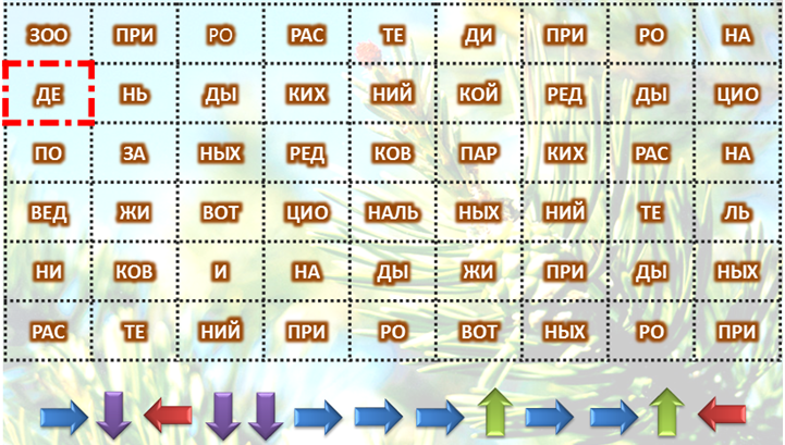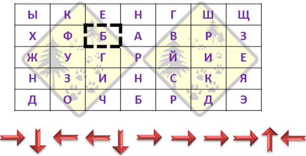 Чтобы узнать его название, двигайся по указанным стрелкам в таблице, начиная с выделенной клеточки.