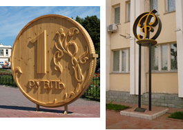 В Императорской России в буквосочетании «ру», ставшем основой знака рубля, буква «р» повернута на 90° против часовой стрелки, а «у» написана поверх неё (см. рисунок).