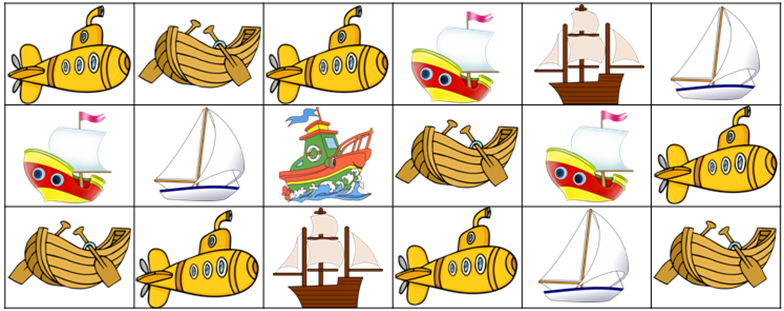 Используя 2 таблицы, узнай название первой российской подводной лодки.
