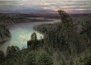 Аполлинарию Михайловичу ***. Одна из известных его картин – «Северный край. Сибирская река» (изображена на рисунке), которая находится в Государственном Русском музее в Санкт-Петербурге. Разгадай ребус, и узнаешь его фамилию.
