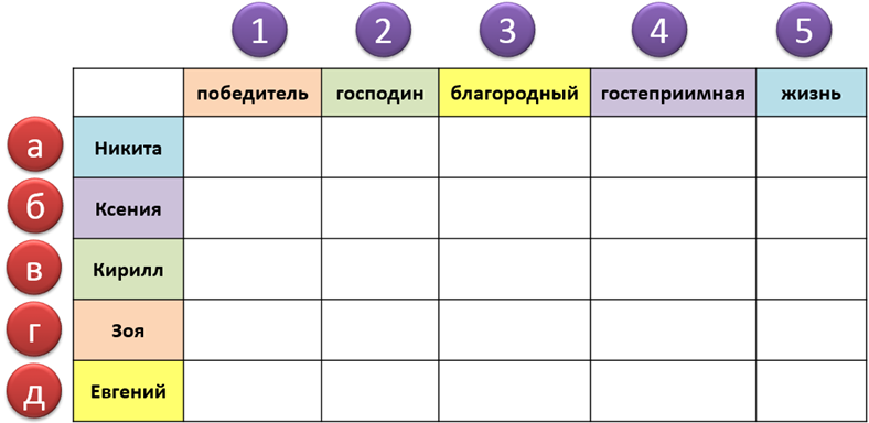Чтобы узнать фамилию этого человека, запиши фамилии людей, изображённых в таблице, и по буквам, которые стот под указанными номерами, прочти фамилию.