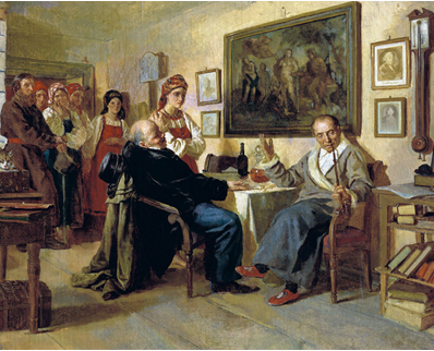 На картине художника Николая Неверева «Торг. Сцена из крепостного