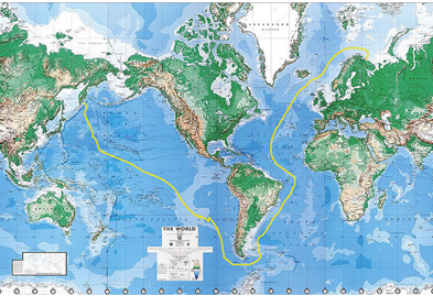 лодок Военно-Морского Флота СССР вышел в кругосветное плавание, успешно завершив поход через 1,5 месяца без всплытия в надводное положение. На карте изображен примерный маршрут трансокеанского подводного перехода двух советских АПЛ под командованием контр-адмирала А. И. Сорокина в 1966 году.