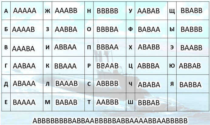 Используя предложенную таблицу, расшифруй фамилию этого контр-адмирала.