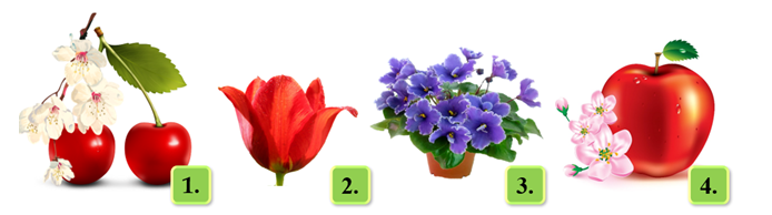 (4 балла) Прослушай рассказ К. Ушинского «Пчелки на разведке» и скажи, в какой последовательности эти цветы упоминались в тексте. В ответе укажи последовательность цифр без пробелов и знаков препинания. Например, 3421