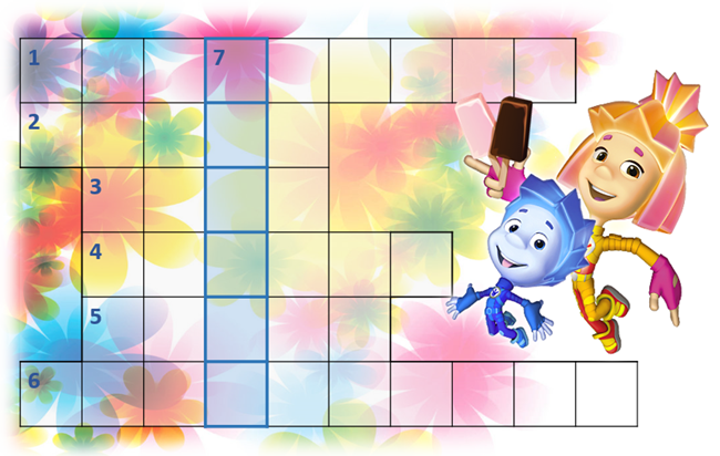 (5 баллов) В чем Фиксики придумали хранить мороженое - подарок Дим Димыча маме на 8 марта, чтобы оно не растаяло? Разгадай кроссворд. Впиши полученное слово в ответе без пробелов и каких-либо знаков препинания.