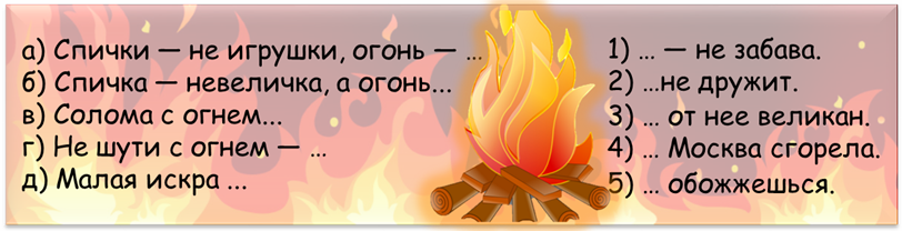 Много лет люди сталкиваются с различными сложными ситуациями. Многие беды случаются из-за невнимательности и безответственности самих людей. Все это запечатлено в пословицах и поговорках, которые уже многие годы переходят из уст в уста. Соотнеси начало пословицы с ее окончанием. В качестве ответа запиши сочетание пар цифра – буква так, чтобы цифры шли в порядке возрастания без пробелов и знаков препинания. Например, 1а2б3в