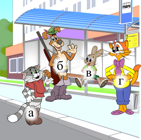 Рассмотри внимательно, как стоят герои любимых мультфильмов на остановочном пункте автобуса. Выбери тех героев мультфильмов, которые правильно (безопасно) ждут приезд автобуса.