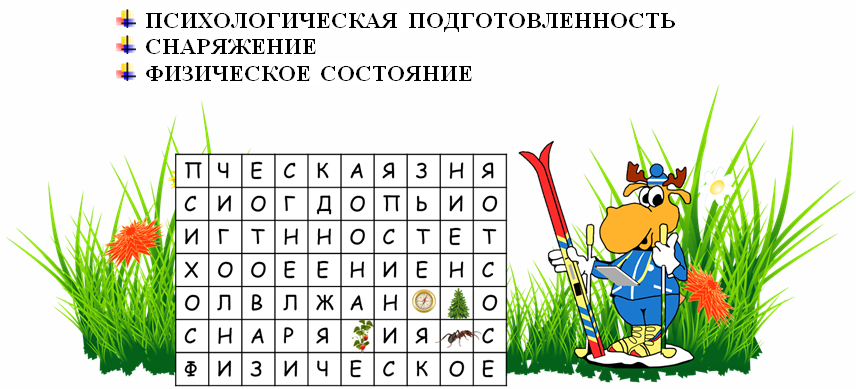 Приближается лето и многие из нас пойдут в походы. При планировании любого туристического похода необходимо учитывать разнообразные факторы. Найди выход из лабиринта, собрав на своем пути все буквы. Так ты найдешь несколько факторов, на которые обязательно нужно обращать внимание перед походом. К какой группе ты их отнесешь?