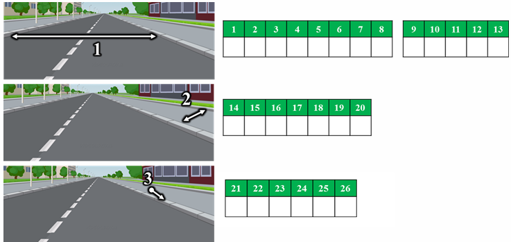Но не все зависит от природы. Опасности люди зачастую навлекают сами на себя. Осторожность не помешает даже на дороге. Подпиши части дороги, указанные на изображении ниже.