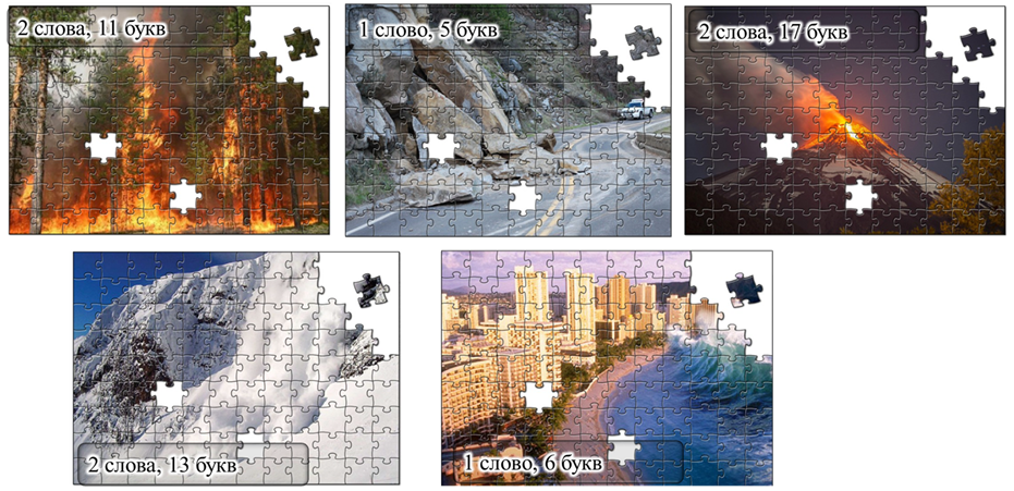 Вычеркни из квадрата букв все природные явления, изображенные на картинках.