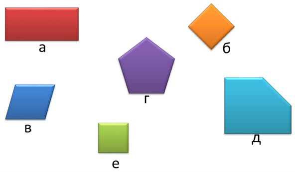 1. (1 балл) Отметь все четырёхугольники.