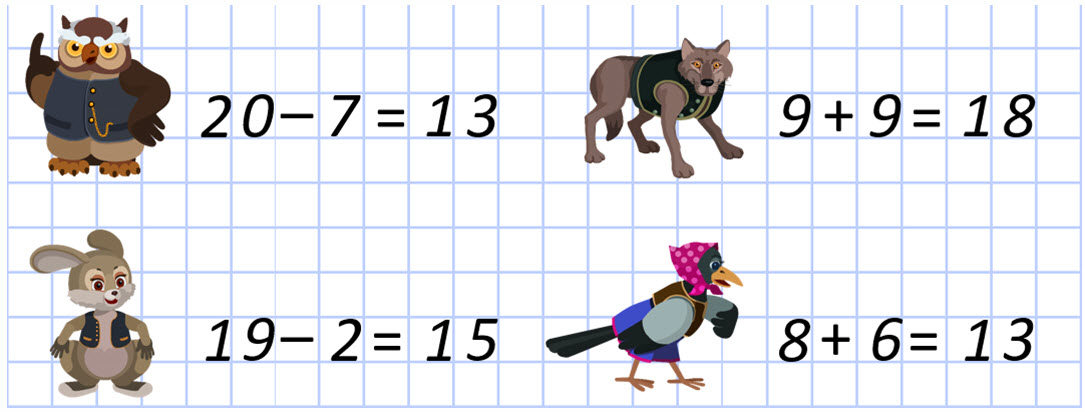 10. (6 баллов) Реши примеры. В каких пунктах неправильно поставлены знаки «меньше», «больше» и «равно»?