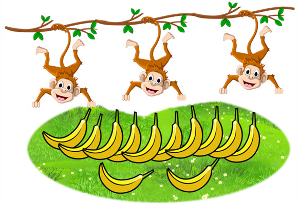 Помоги обезьянкам разделить бананы поровну. Сколько бананов получит каждая обезьянка?