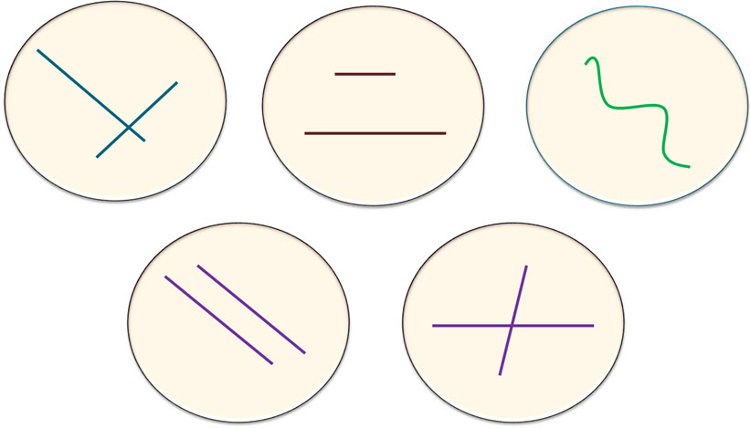 3. (2 балла) На скольких рисунках изображены пересекающиеся прямые?