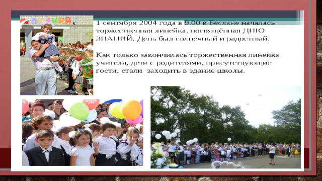 Во время проведения торжественной линейки террористы ворвались на территорию школы