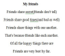 | And now we will listen the poem about friends. -Do you agree with it? -Do you always share with your friend? -What is the best thing about friends?