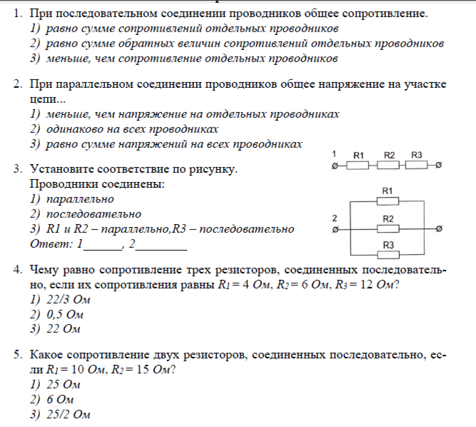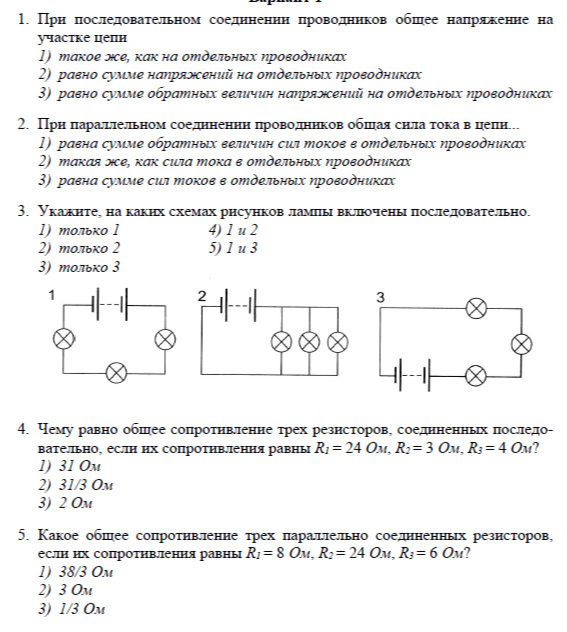 8 Класс. Разноуровневая контрольная работа. Параллельное и последовательное соединение проводников. (648.87 KB)