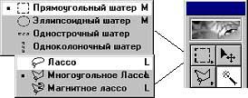 Белгіленген аймақ экранда үзілген сызықтармен белгіленеді. Marquee және Lasso құрал-сайманын қолдану үшін бейнені басып және белгілегіңіз келіп тұрған аймаққа дейін алып келу керек, осыдан кейін тышқанды жіберу керек.